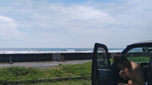 おはよう。 19号、ノロノロと移動し波を送る。 しかし、地元は半分クローズというか。。。 そこで「先端説」が出る。 ちょうど粂会長と「現場調査」があったんで先端に向かう。 「多分、よくはねえな。。。。 けど、肩は回せる。。。。」 いやしかし、百百辺…