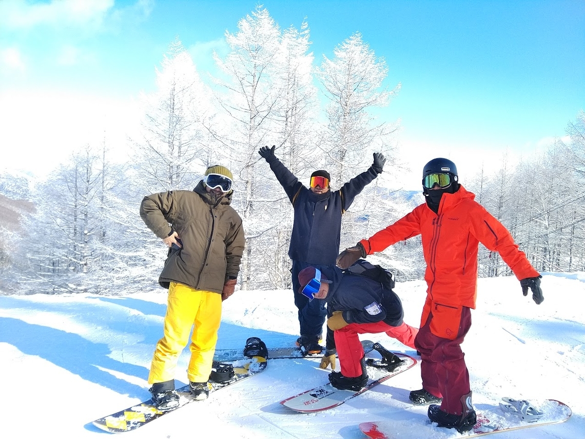 休憩がはやいのがこの部活だが、いい天気で圧雪バーンは久しぶりの「かっとび」ができる。