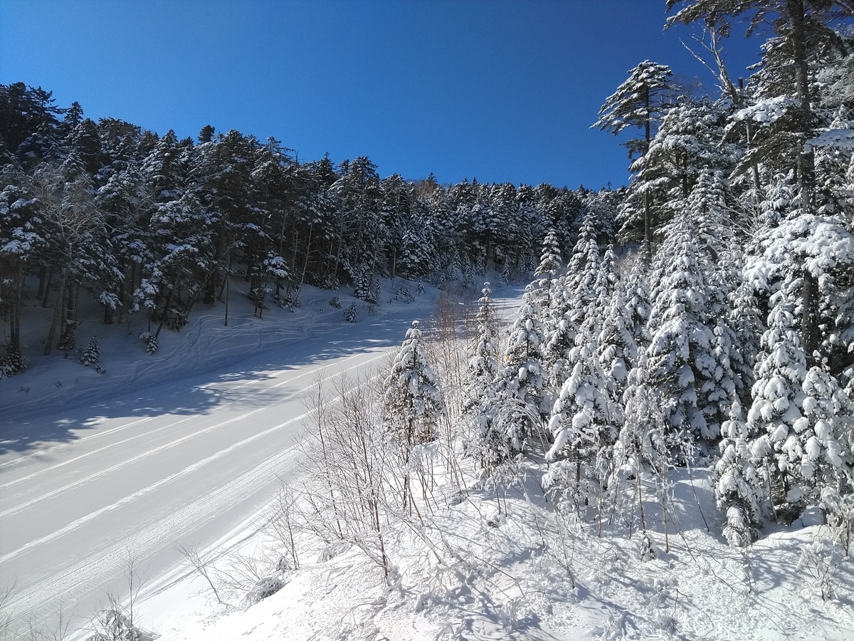 うっすらと木々にも積もっており、圧雪バーンが気持ちよさそう。