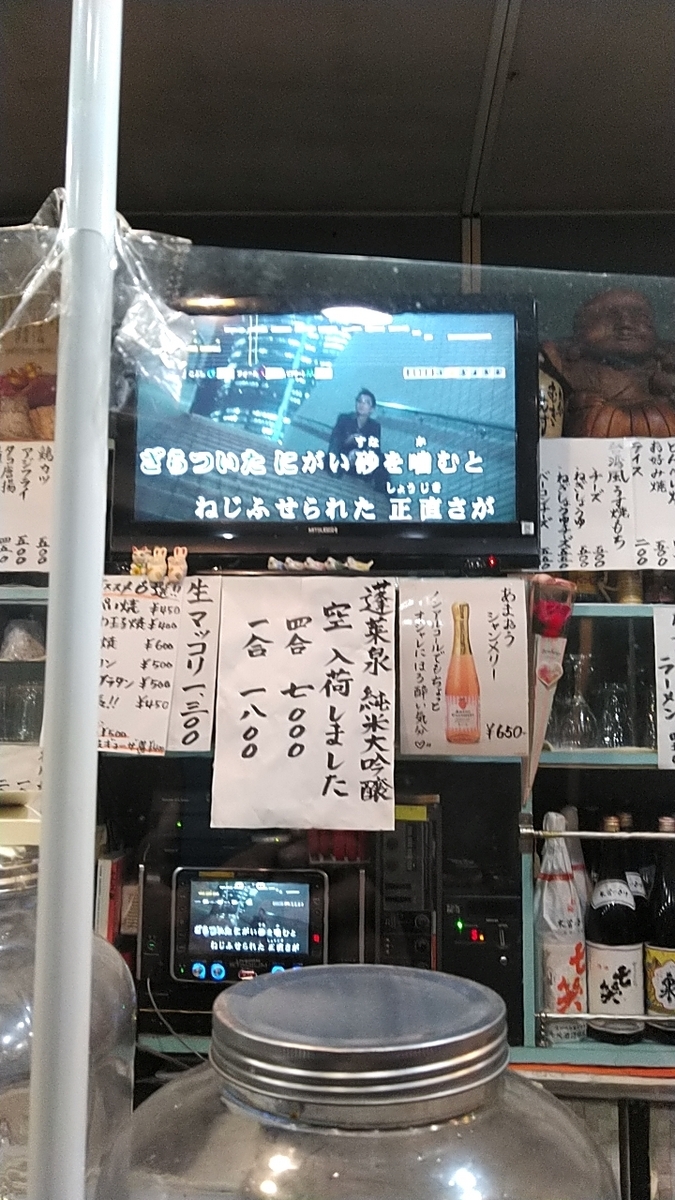 カウンターの常連のおっさんどもとうだうだ話しながらチビチュビやる。