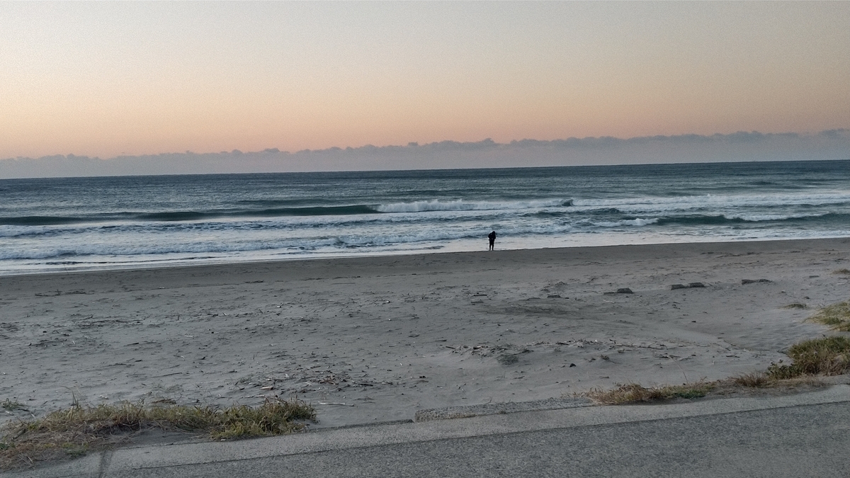 それで海から上がって着替え、これが寒いwと、やっと落ち着いたところへ「でた、TSRw」
