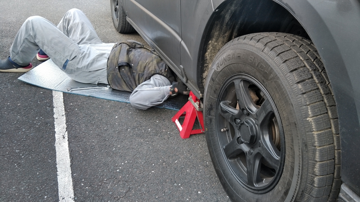 トーションバーのナットで車高を弄るんだが、これがなかなか合わねえ上に、馴染むと少し変わる。