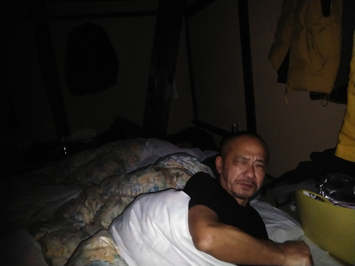 旅先で寝起きの男性を激写した微笑ましい1枚。